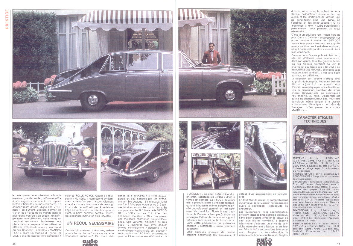 A small number of cars were exported to a dealer in France, who "grey marketed" them into that country. These cars had no division window mechanism or barrier at all! The front seats were electric and sourced from the XJ6 series III. It is unknown whether the cars retained the occasional (jump) seats. If anyone has pictures or direct knowledge of these cars, please email me!