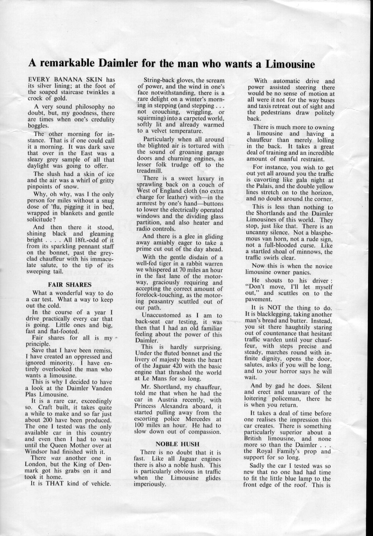 The last Daimler model not shared with Jaguar was the DS420 limousine.