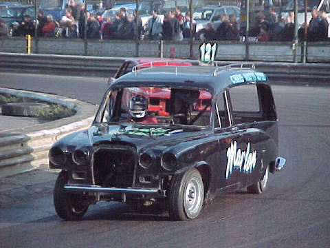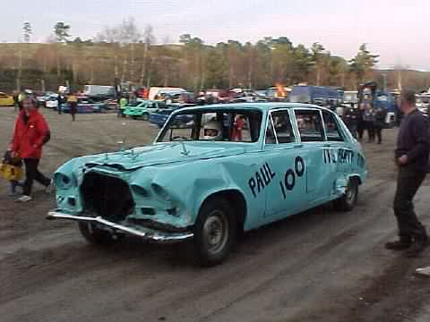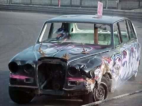 These pictures are from "Banger Racing" in the UK. All vehicles depicted were beyond restoration when stripped for this racing event. No restorable cars were destroyed for these events.
